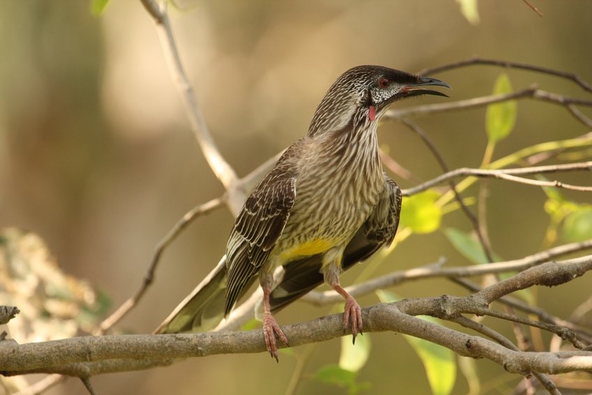 The Red Wattlebird can be found in woodlands and forests from south east Australia to south west Australia, basically all along the southern end of the country. A honeyeater, they take nectar from a wide range of flowers and also insects. They breed mostly from July to December but will breed through to February in higher areas. Usually two but sometimes three eggs.