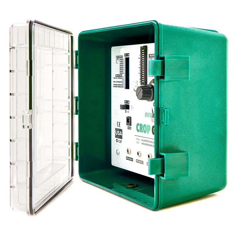 The Crop Gard is the first of a new series of Bird Repelling Sound Units which use a combination of several unique and distinct sounds. It can be factory fitted with a variety of different sound combinations. The most commonly used is the specialised Crop Gard Harassment microchip that emits the following harassment sounds: