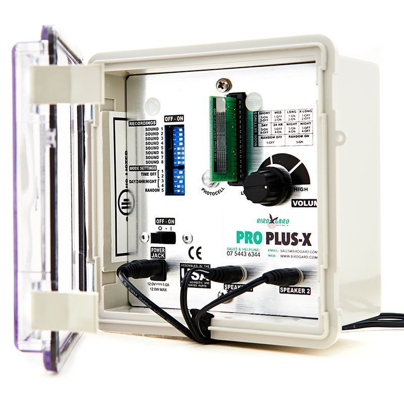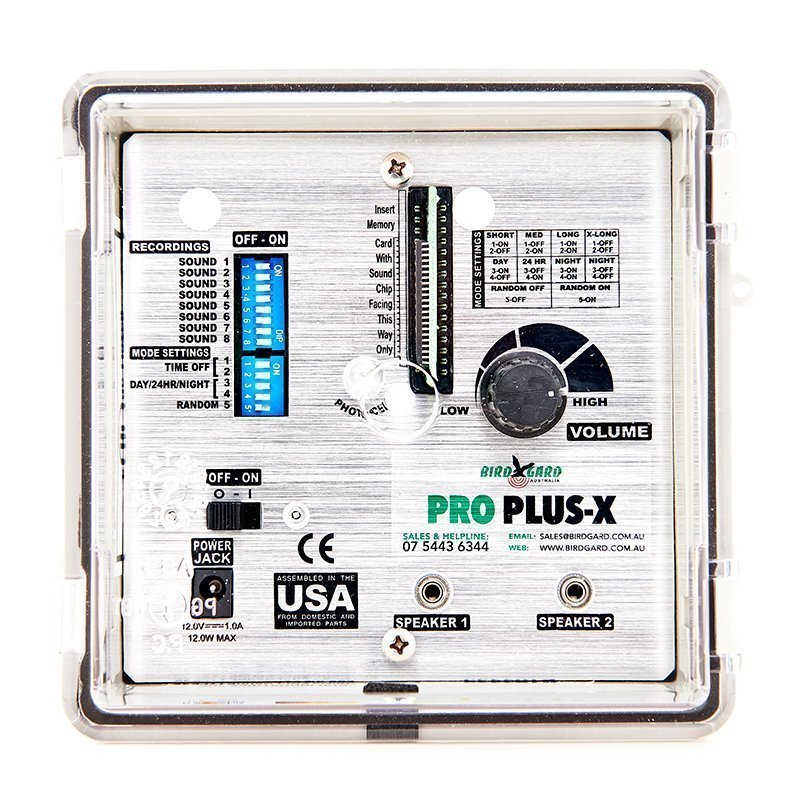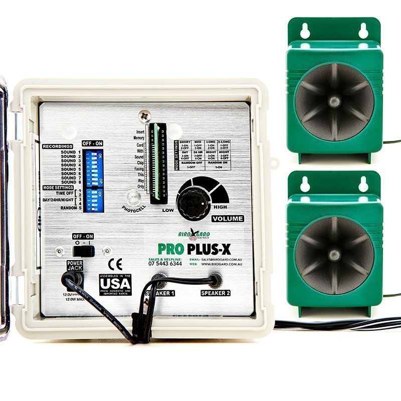 The Pro Plus is a junior version of the Crop Gard. It has 2 major non-natural harassment sounds. When these sounds are combined, they are very effective against most common bird pests such as: